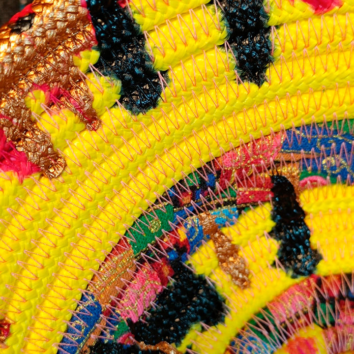 Meine Seilkreationen kombiniert mit Pouring-Farben liebe ich ganz besonders. Dieser hat nur einen recht kleinen Bodendurchmesser, ist jedoch durch seine gute obere Breite und die Höhe sehr geräumig. Eine farblich passende, handgearbeitete Stoffperle rundet das Ganze ab.