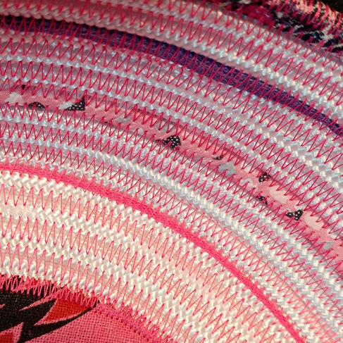 Super Mini-Körbchen aus Makramee-Garn, komplett mit rosafarbenem Tüll mit Goldpunkten umwickelt und einem Goldband als Randabschluß.  Ein Leichtgewicht, welches trotzdem sehr fest und stabil ist.